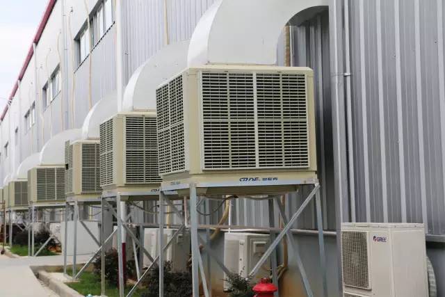 這批環(huán)??照{共20臺,當室外溫度在35℃以上,空氣濕度為65%-80%以上時,環(huán)??照{就會進行送風,出風口溫度比室外溫度低4-10℃,散射降溫面積1平方米左右,經環(huán)??照{過濾降溫后的清新涼風將源源不斷地送入車間,同時將車間內的高溫悶熱的熱空氣從門窗擠壓到室外。