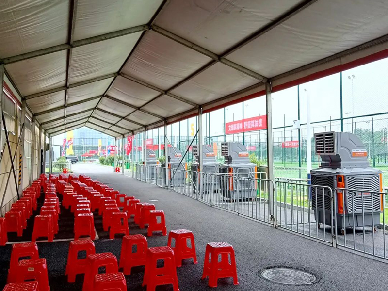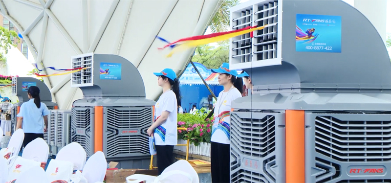 本次活動期間,瑞泰風(fēng)經(jīng)過現(xiàn)場實(shí)地考察,科學(xué)規(guī)劃,一次性投放了30套移動冷風(fēng)機(jī)設(shè)備,其中包括經(jīng)典版和體育版兩個系列產(chǎn)品,降溫效果顯著,安裝使用也非常便捷,確保各項室內(nèi)、戶外賽事活動的順利開展。移動冷風(fēng)機(jī)是一款節(jié)能環(huán)保的降溫設(shè)備,尤其適合戶外使用,僅需2分鐘即可將35℃的高溫降低到26~27℃,達(dá)到人體最舒適,也是多類體育項目最適宜的溫度環(huán)境。此外,移動冷風(fēng)機(jī)送風(fēng)距離遠(yuǎn),覆蓋范圍廣,單臺設(shè)備的送風(fēng)距離可達(dá)30米,并且有效覆蓋120°扇形區(qū)域。