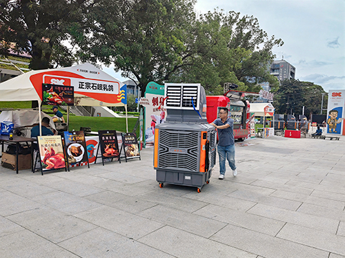 2.靈活實用是它的另一大優(yōu)勢。底部萬向輪設(shè)計,讓冷風機可輕松移動于露營地、展會攤位、游樂園排隊區(qū)等多種場景,即插即用,無需復雜安裝,徹底擺脫傳統(tǒng)空調(diào)對固定場地的依賴。在某城市露營嘉年華中,數(shù)十臺瑞泰風設(shè)備駐守關(guān)鍵區(qū)域,讓排隊人群告別悶熱,舞臺前的觀眾也能專注欣賞表演,活動整體好評率提升40%。