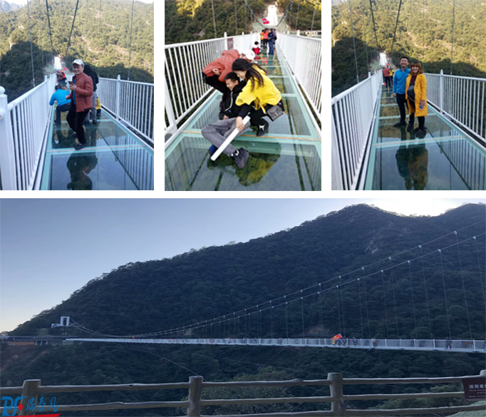 瑞泰風(fēng)員工代表正在爬祥云梯而我們歡欣雀躍要去的地方是云門山玻璃棧道,廣東省首座全透明高空玻璃橋,橋面全部采用透明玻璃鋪設(shè),橋體全長316米 橋?qū)捊?米 橋體全長316米,垂直高度達(dá)168米,足足62層樓高!