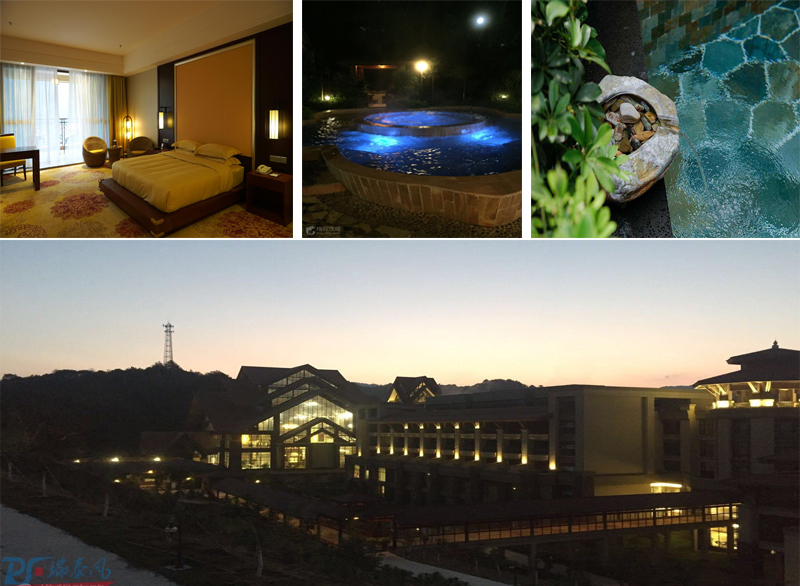 游覽了云門山,體驗(yàn)了玻璃棧道,晚上我們驅(qū)車趕往經(jīng)律論文化旅游小鎮(zhèn)溫泉度假村,其占地16.8公頃,作為一家以五星級(jí)標(biāo)準(zhǔn),并按照以“禪佛”為主題的國家級(jí)大型禪文化主題園區(qū)的標(biāo)準(zhǔn)打造的高規(guī)格酒店,園區(qū)內(nèi)集【禪修、溫泉、度假、養(yǎng)生】為一體,充分利用已有的天然氡溫泉資源、優(yōu)美清幽山景,完整詮釋自然之美,突出以【禪文化】為特色的核心理念。不得不說,這里的夜景真的非常漂亮,燈光點(diǎn)綴著的旅游小鎮(zhèn)就像是一座迷人的城堡。作為美名遠(yuǎn)揚(yáng)的溫泉酒店,來這里肯定要體驗(yàn)溫泉的,燈光和霧氣映襯下的溫泉池有種異樣的美,美的很朦朧也很溫暖!